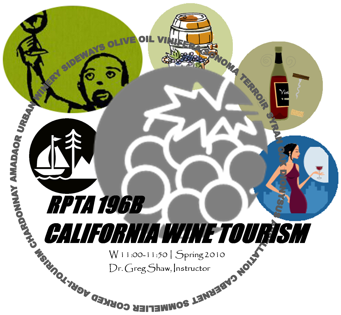 196B :: California Wine Tourism Introduction to the wine tourism industry in California, with an emphasis on marketing wineries (including diversity in wine marketing), wineries as event stages (tableaux), marketing related agri-tourism products, wine destination “pull” factors, and winery retail. The course will also examine wine mythology, culture and ritual, the role of the sommelier, wine region geography, wine science, destination sustainability, and wine tourism impacts (social, moral, economic, agricultural and infrastructural). Includes field trips that do not involve wine tasting. |