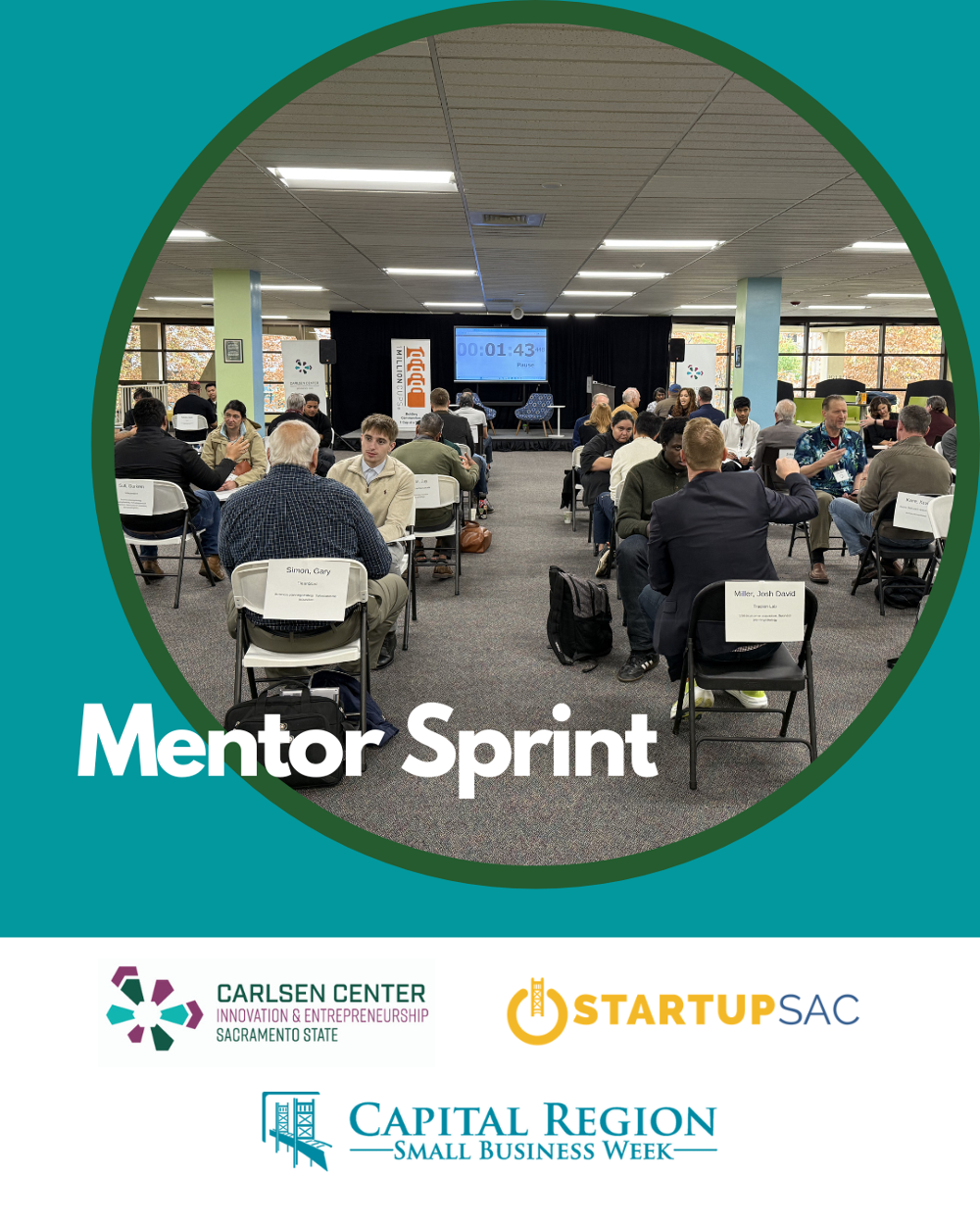 This event is part of Capital Region Small Business Week. It is organized by the Carlsen Center for Innovation & Entrepreneurship and StartupSac.