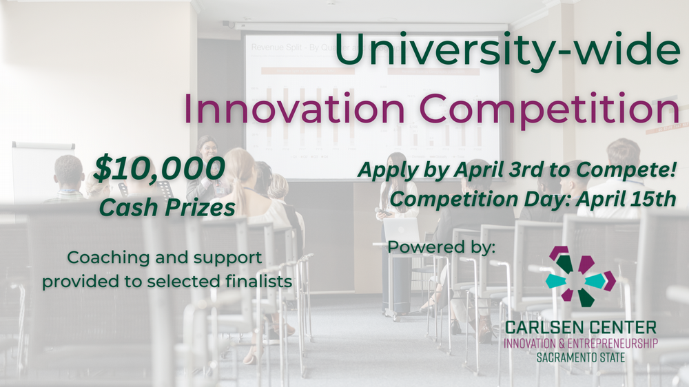 The Sacramento State University-Wide Innovation Competition is an opportunity for student innovators and entrepreneurs to showcase their ideas, technologies, and/or businesses while receiving mentorship, and the opportunity to win prize money and experience personal development.