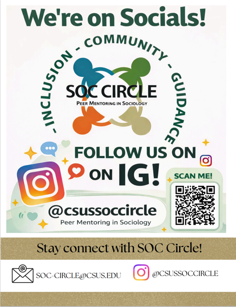 Each semester SOC Circle hosts events that are open to all students enrolled in SOC 193A/B as well as all sociology major. These have included a How to Prepare for Graduate School - Informational Sessions (hosted each semester) as well as other workshops on campus and via Zoom.