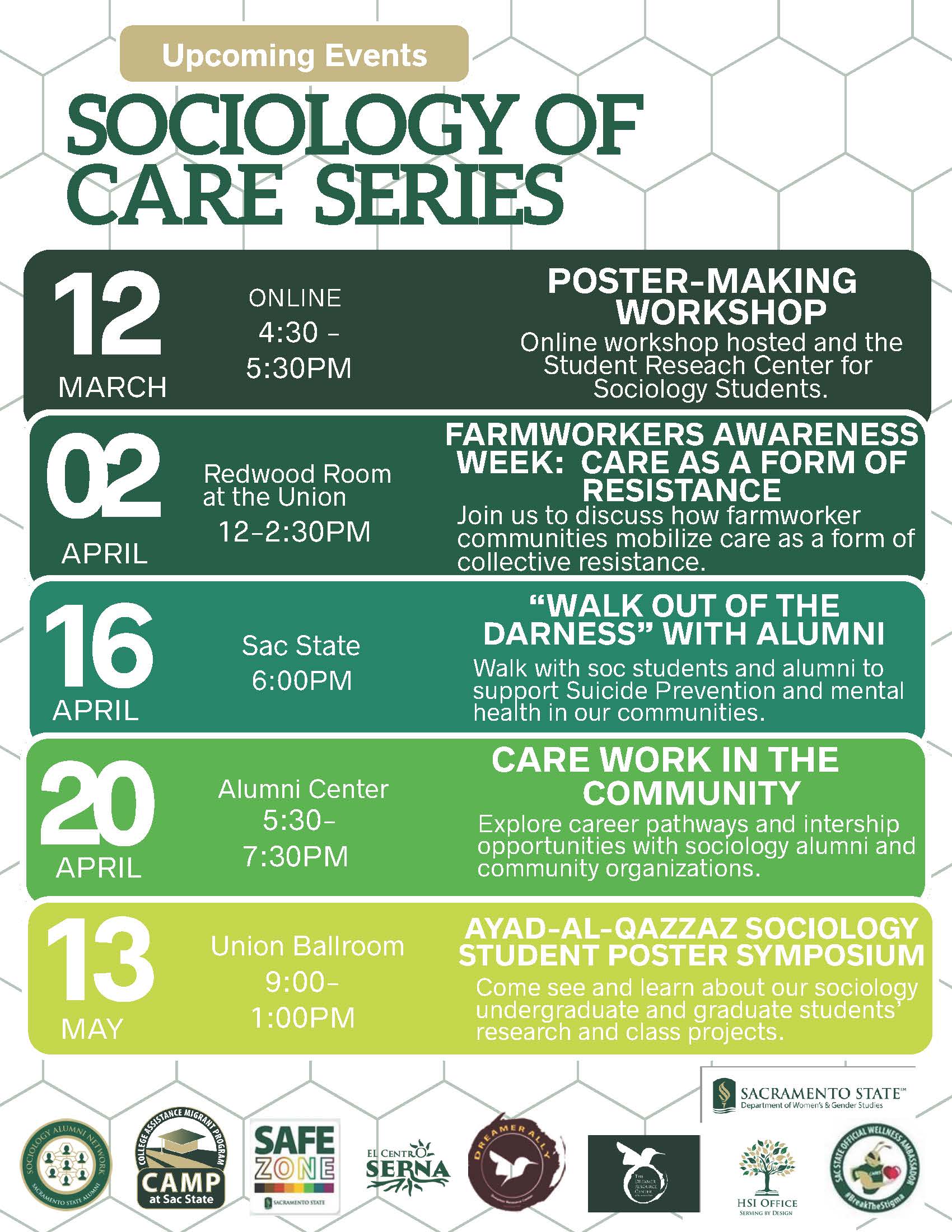 This year as part of the end of year celebration, the Sociology Alumni Network is collaborating with the Sociology Department and community partners to host a panel discussion on Care Work in the Community. Attendees will have the opportunity to explore career pathways and internship opportunities with sociology alumni and community organizations.