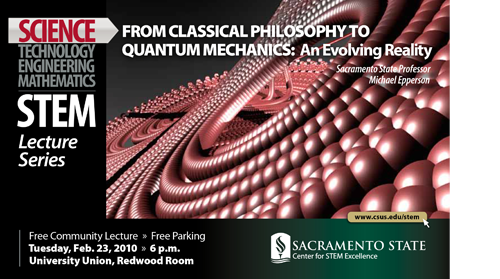 The CSUS Center for STEM Excellence invited Sacramento State Professor Michael Epperson to give a public talk describing the philosophical implications of recent innovations in quantum mechanics, and the resulting challenges for the conventional classical world view.