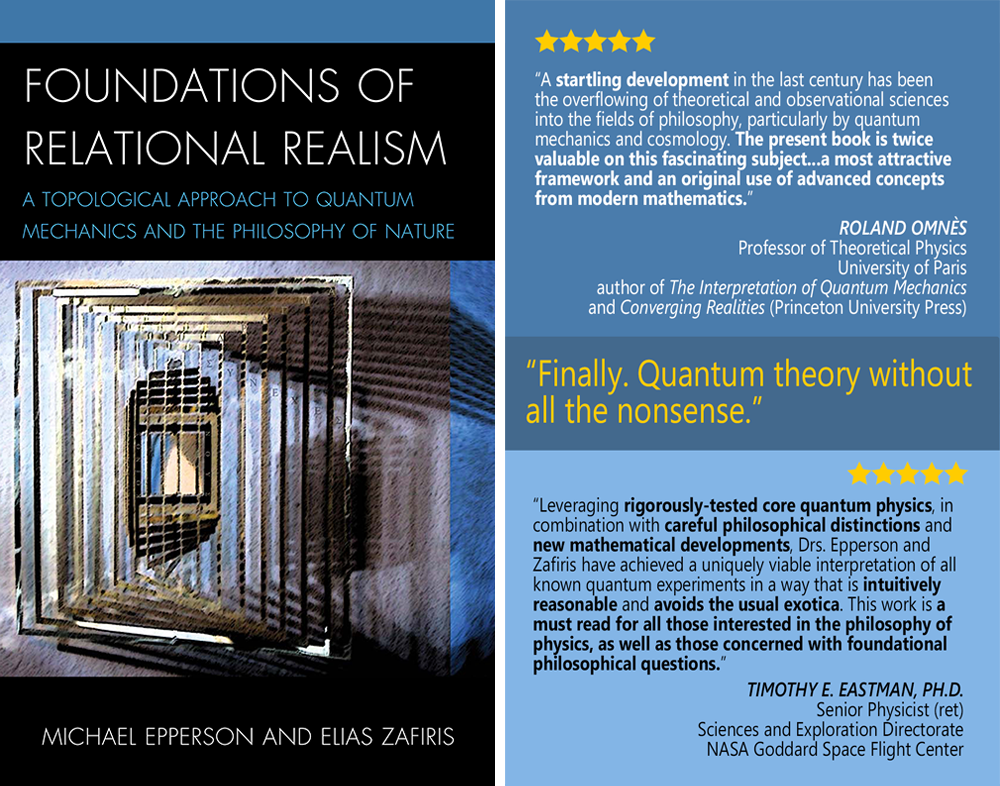 “Leveraging rigorously-tested core quantum physics, in combination with careful philosophical distinctions and new mathematical developments (topology and category theory), Drs. Epperson and Zafiris have achieved a uniquely viable interpretation of all known quantum experiments (including many rigorously-checked Bell inequality tests) in a way that is intuitively reasonable and avoids the usual exotica. In addition, their predictions on non-local quantum correlations associated with global topological phases have been confirmed in recent experiments. Epperson provides very readable yet in-depth philosophical and interpretive foundations (210 pages) followed by Zafiris' rigorous treatment of mathematical foundations (177 pages). This work is a must read for all those interested in the philosophy of physics, as well as those concerned with foundational philosophical questions.”
