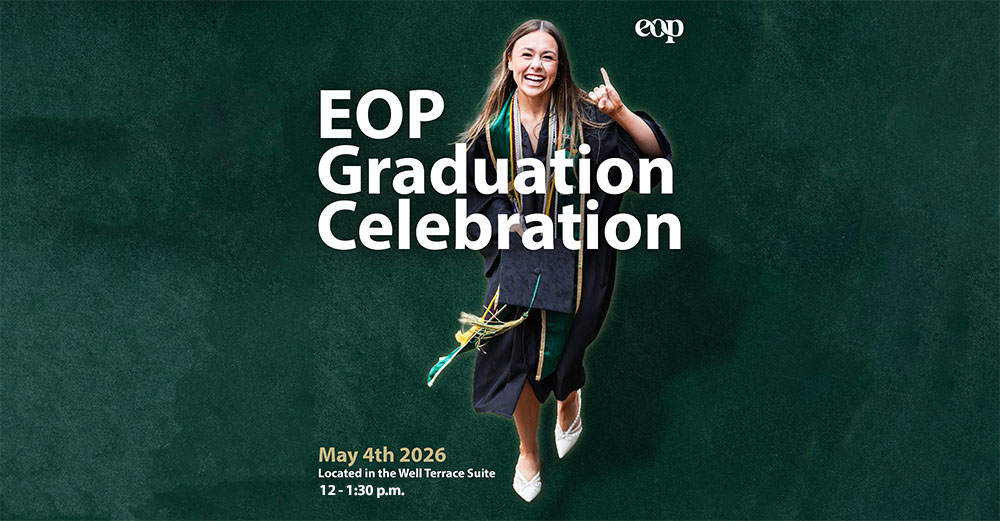The Educational Opportunity Program will be hosting our 2026 EOP Graduation Celebration on Monday, May 4, 2026, from 12 to 1:30 p.m. at the Well Terrace Suite. We are excited to be commemorating our graduating seniors from the fall of 2025, the spring of 2026, or the summer of 2026.
