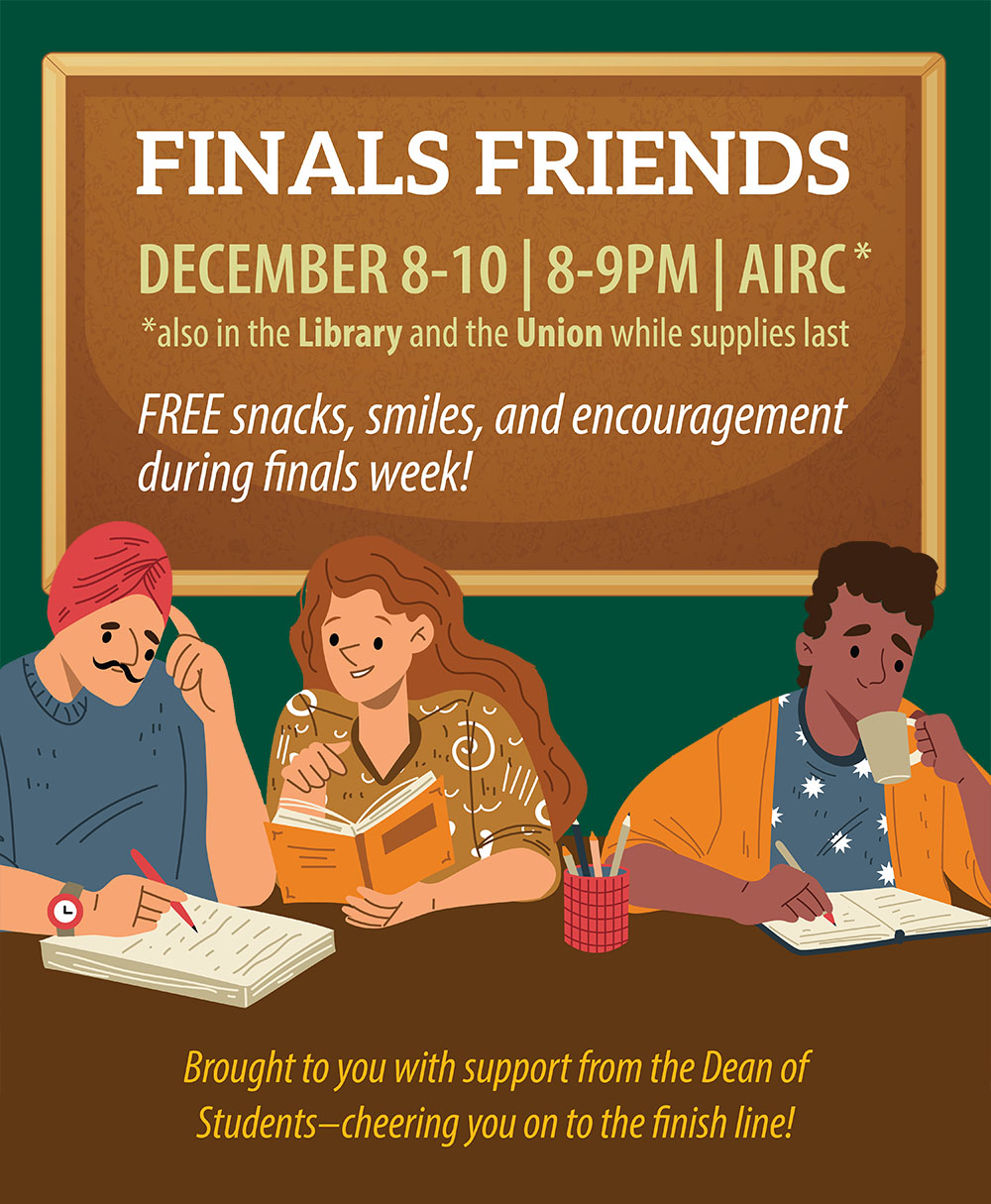 Feeling the crunch of finals week? The Dean of Students and Student Affairs are here to cheer you on to the finish line!